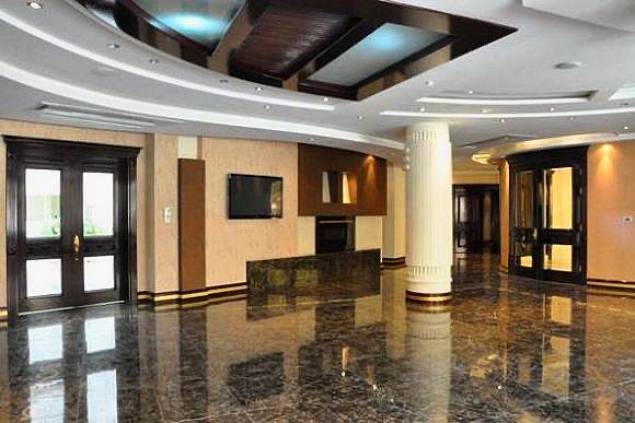 - لابی مجلل با ارتفاع سقف ۶ متر و طراحی سنگی کلاسیک
