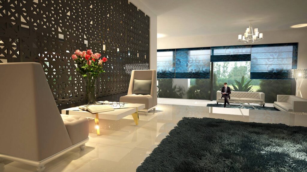 - لابی مجلل با ارتفاع سقف ۳.۶ متر