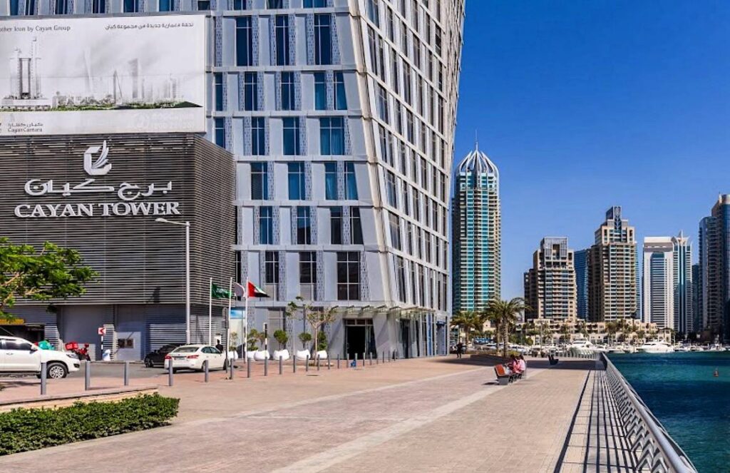 برج مسکونی کایان دبی (Cayan Tower) یکی از شاخصترین و خلاقانهترین سازههای مسکونی جهان است که در منطقه لوکس دبی مارینا (Dubai Marina) واقع شده است.