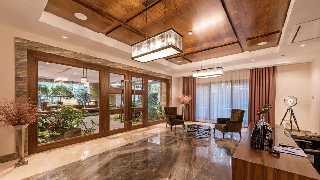 - لابی مجلل با ارتفاع سقف ۵ متر