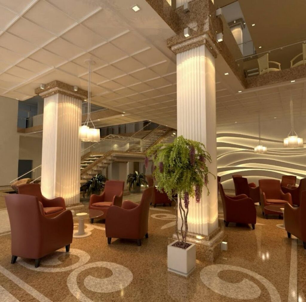 - لابی تریبلکس مجلل با ارتفاع ۱۴ متر