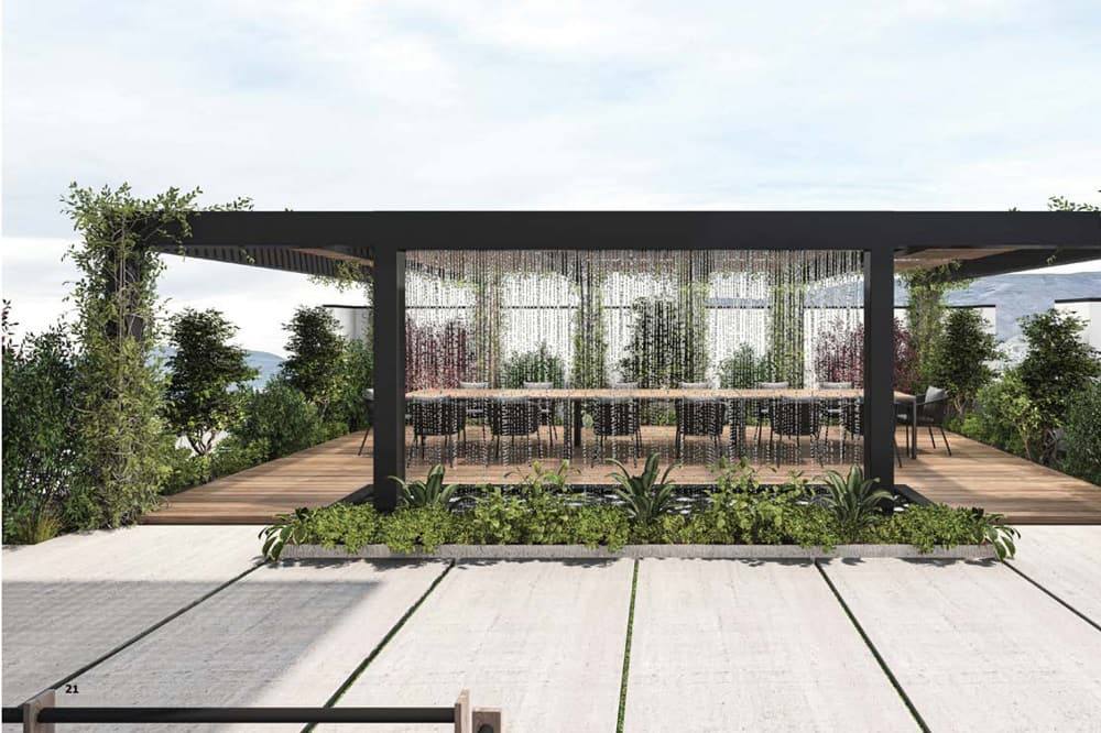 - روف گاردن ۲۴۰۰ مترمربعی با کافه، استخر روباز، پیست دوچرخهسواری و باغ معلق