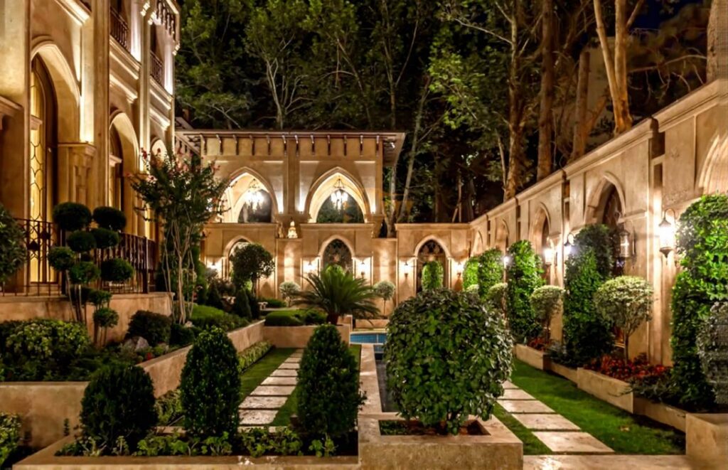 - روفگاردن سبز و طراحیشده با آلاچیق فرنیش و مسقف، آشپزخانه، آبنما و فلاورگاردن