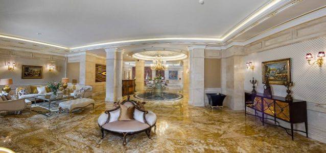 - لابی شیک و مجلل به مساحت ۳۰۰ مترمربع با ارتفاع سقف ۵ متر